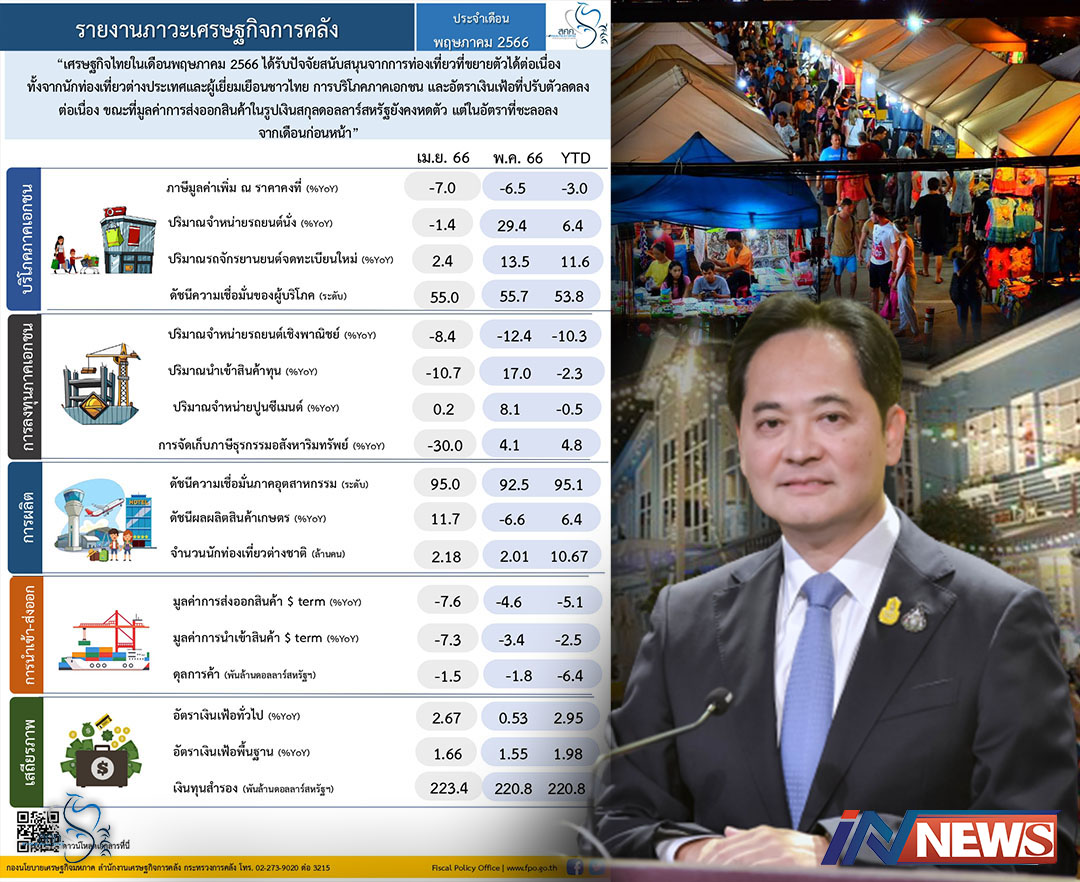 ภาวะเศรษฐกิจการคลังไทยเดือนพ.ค.66 ปรับตัวดีขึ้น/นายกฯกำชับรักษาระดับศก.