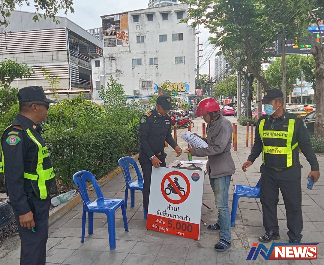 เขตคลองเตยรุกตั้งจุดกวดขันวินัยจราจร เล็งติดกล้องจับภาพจยย.ขับบนทางเท้า