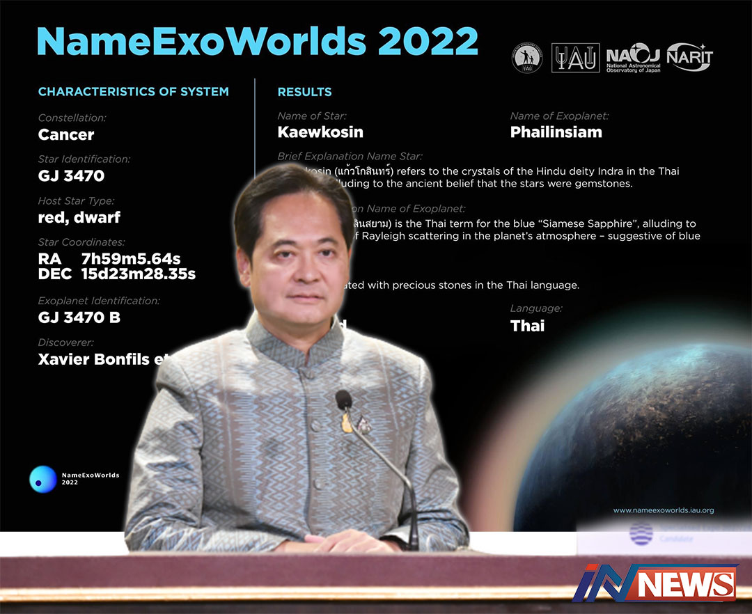 กรุงเทพฯ-โฆษกรัฐบาลเผย นายกฯ ยินดีดาราศาสตร์ไทยก้าวหน้า นักดาราศาสตร์ไทยมีศักยภาพ IAU รับรองชื่อภาษาไทยของดาวฤกษ์แม่และด...