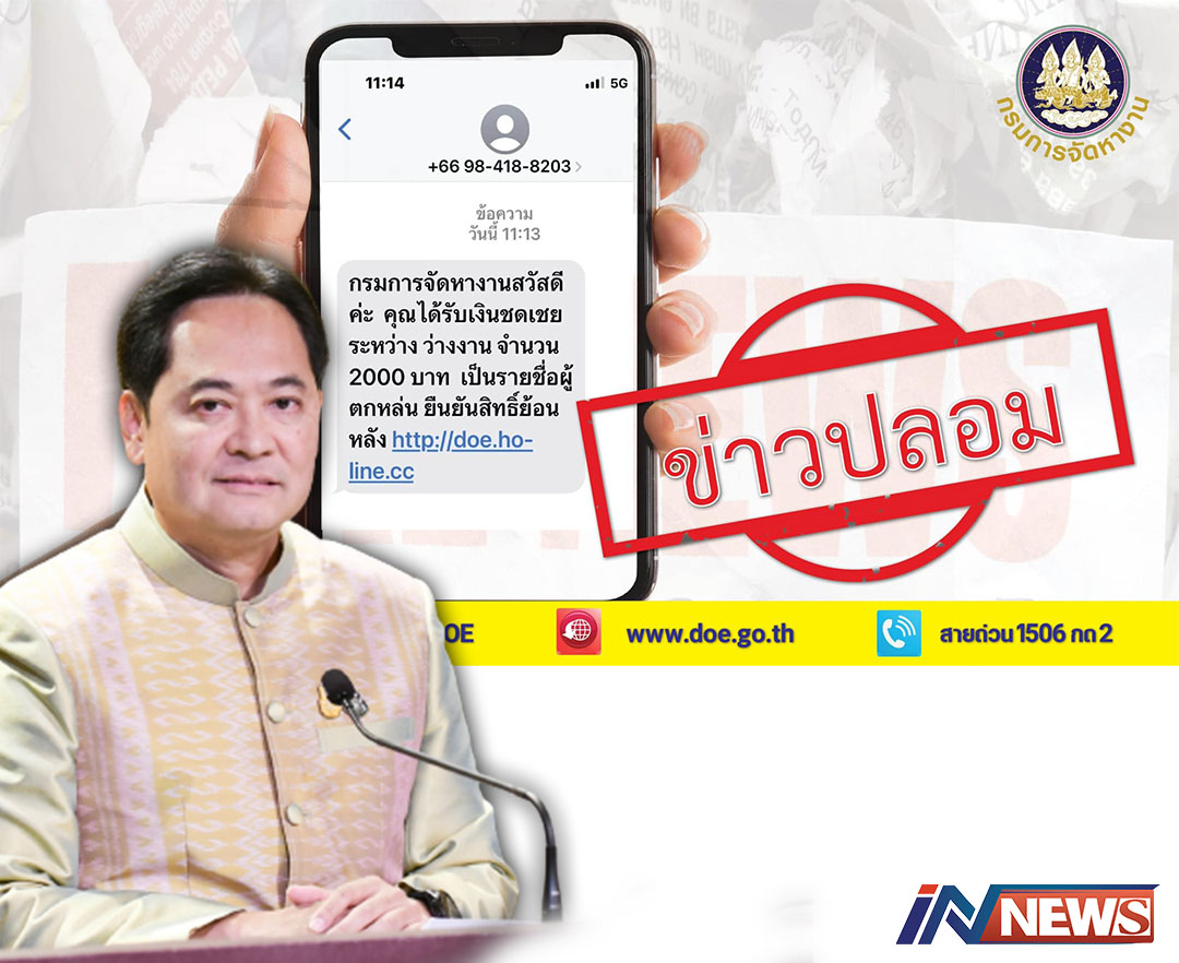 เตือนอย่าหลงเชื่อSMSลวงรับเงินชดเชย ผู้ว่างงาน2พันบาทรัฐฯยันไม่มีนโยบาย