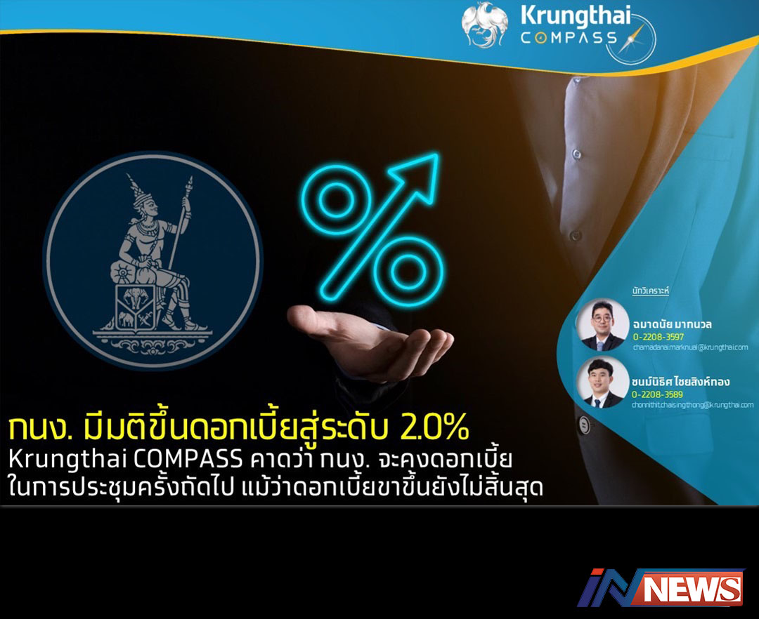 กรุงไทยฯประเมินกนง.ขึ้นดอกเบี้ยที่2.0% คาดปลายปีขึ้นอีก0.25%เหตุเงินเฟ้อยังสูง