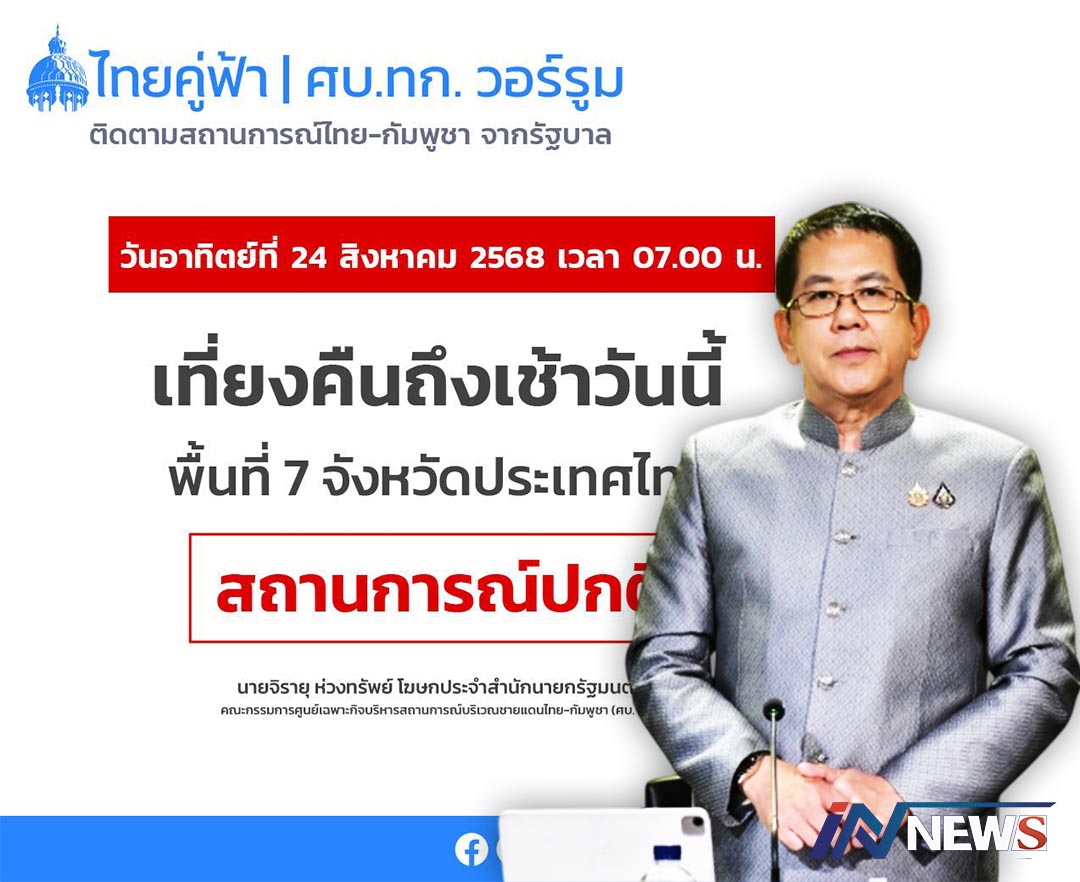 กรุงเทพฯ-วันนี้ (วันจันทร์ที่ 25 สิงหาคม 2568) เวลา 07.00 น. นายจิรายุ ห่วงทรัพย์ โฆษกประจำสำนักนายกรัฐมนตรี และคณะกรรมก...