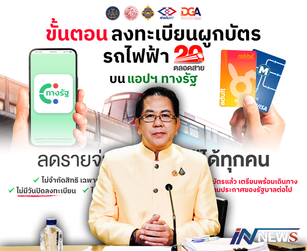 'รถไฟฟ้า20บาทตลอดสาย'เริ่ม25ส.ค.นี้ สมัครผ่าน'แอปฯทางรัฐ'ยันไม่จำกัดสิทธิ