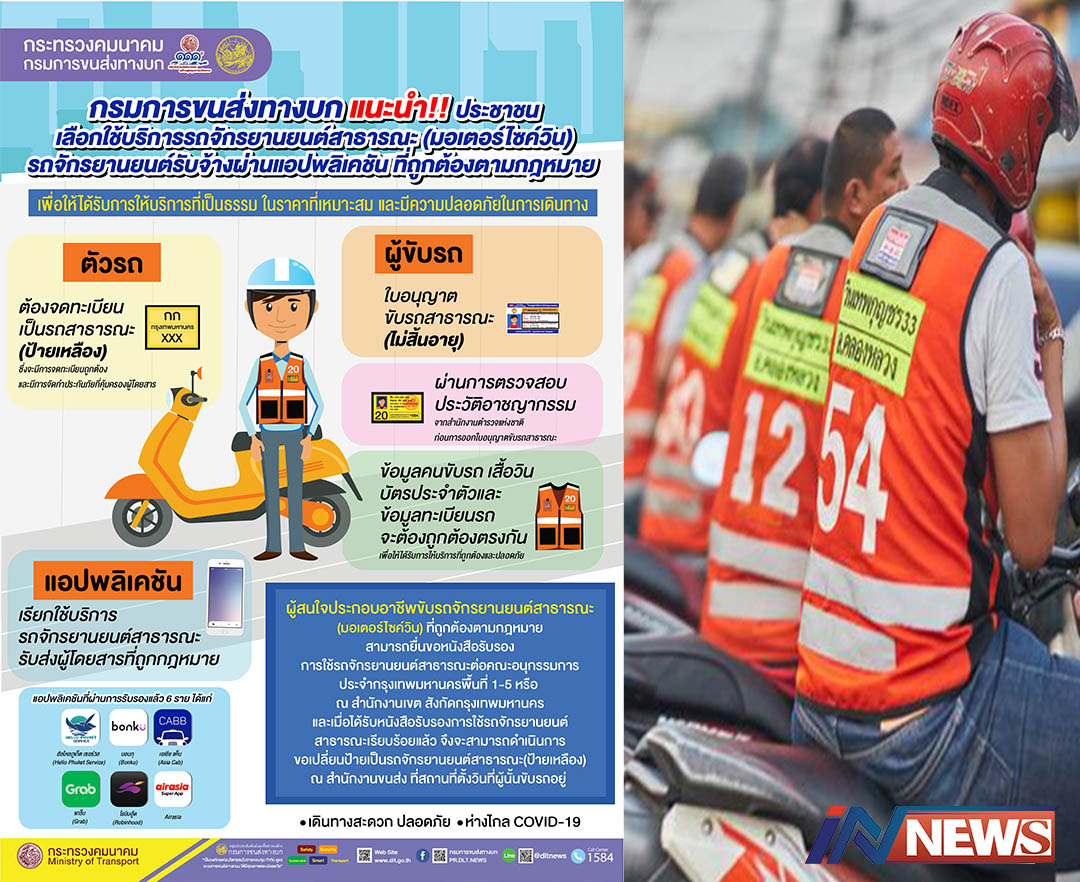 ขบ.แนะนำเรียกมอไซค์วินผ่านแอปถูกกม. ปัจจุบันมี6รายเปิดให้บริการทั่วไทย