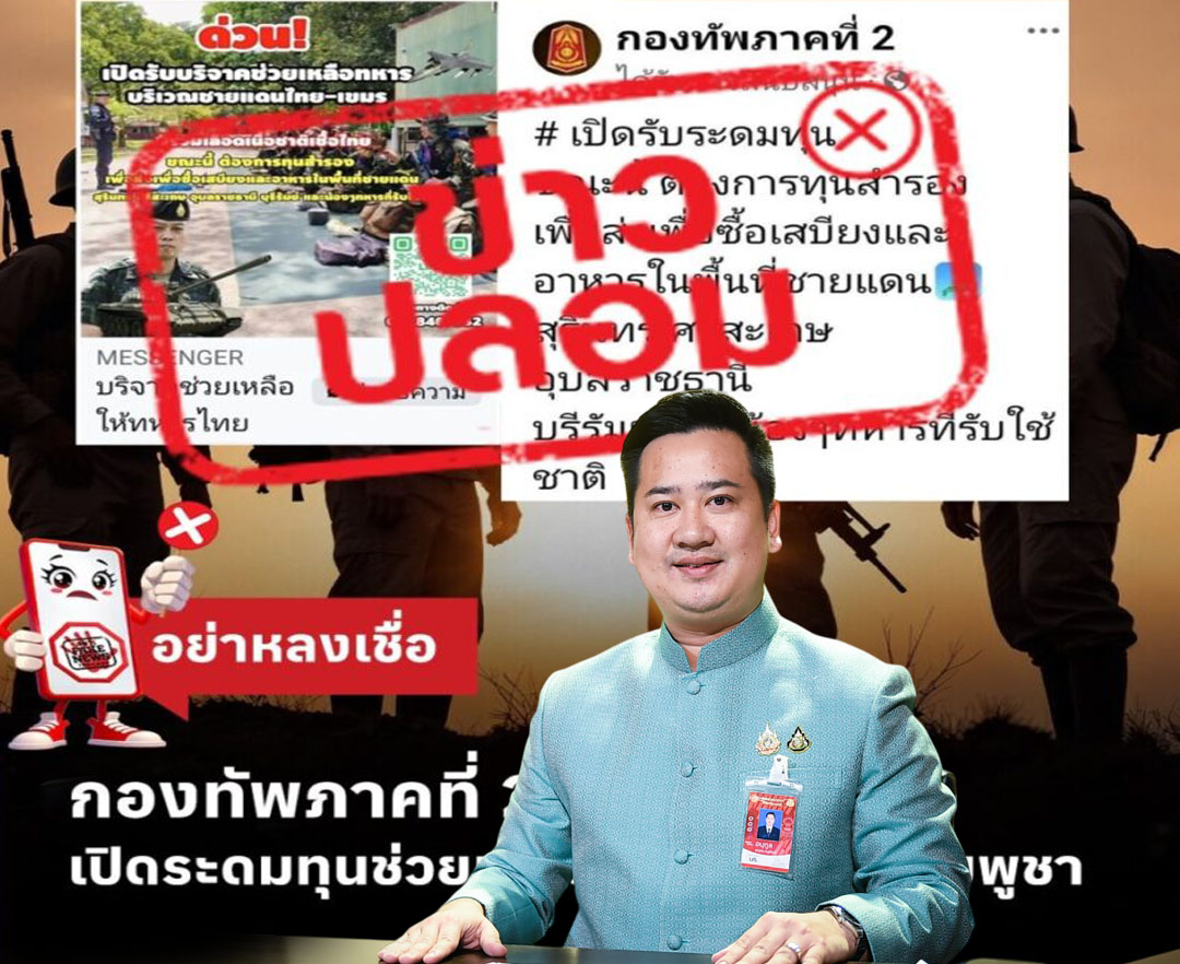 ย้ำเตือนปชช.ระวังถูกหลอกรับเงินบริจาค ช่วยทหารชายแดนเสี่ยงสูญเงิน-ข้อมูล
