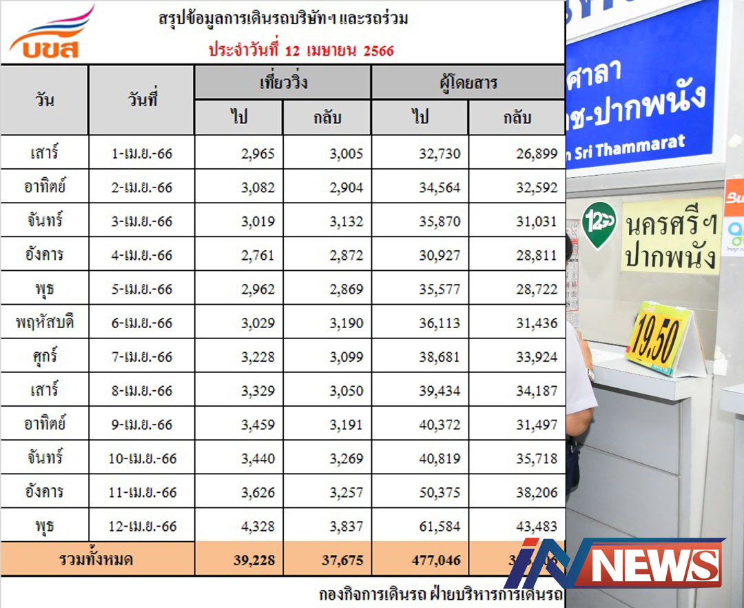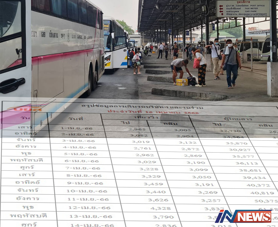 กรุงเทพฯ-บขส.เผยช่วงเทศกาลสงกรานต์ 11-13 เม.ย.ที่ผ่านมา ประชาชนเดินทางกลับภูมิลำเนาตามเป้าหมาย ไม่มีผู้โดยสารตกค้าง