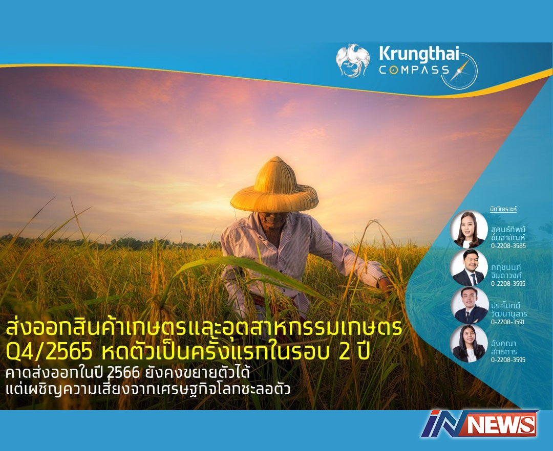 กรุงเทพฯ-Krungthai COMPASS นำเสนอบทวิเคราะห์เรื่อง “ส่งออกสินค้าเกษตรและอุตสาหกรรมเกษตร Q4/2565 หดตัวครั้งแรกในรอบ...