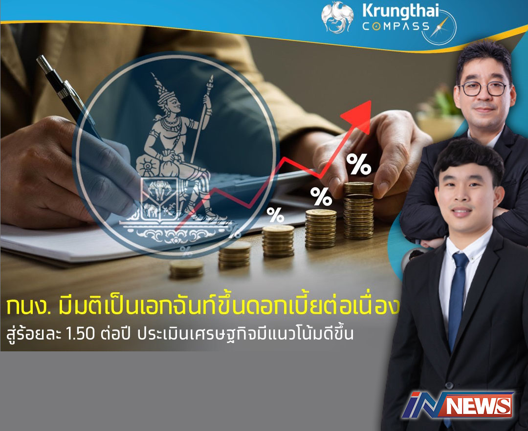 กรุงเทพฯ-Krungthai COMPASS นำเสนอบทวิเคราะห์เรื่อง “กนง. มีมติเป็นเอกฉันท์ขึ้นดอกเบี้ยต่อเนื่อง สู่ร้อยละ 1.50 ต่อ...