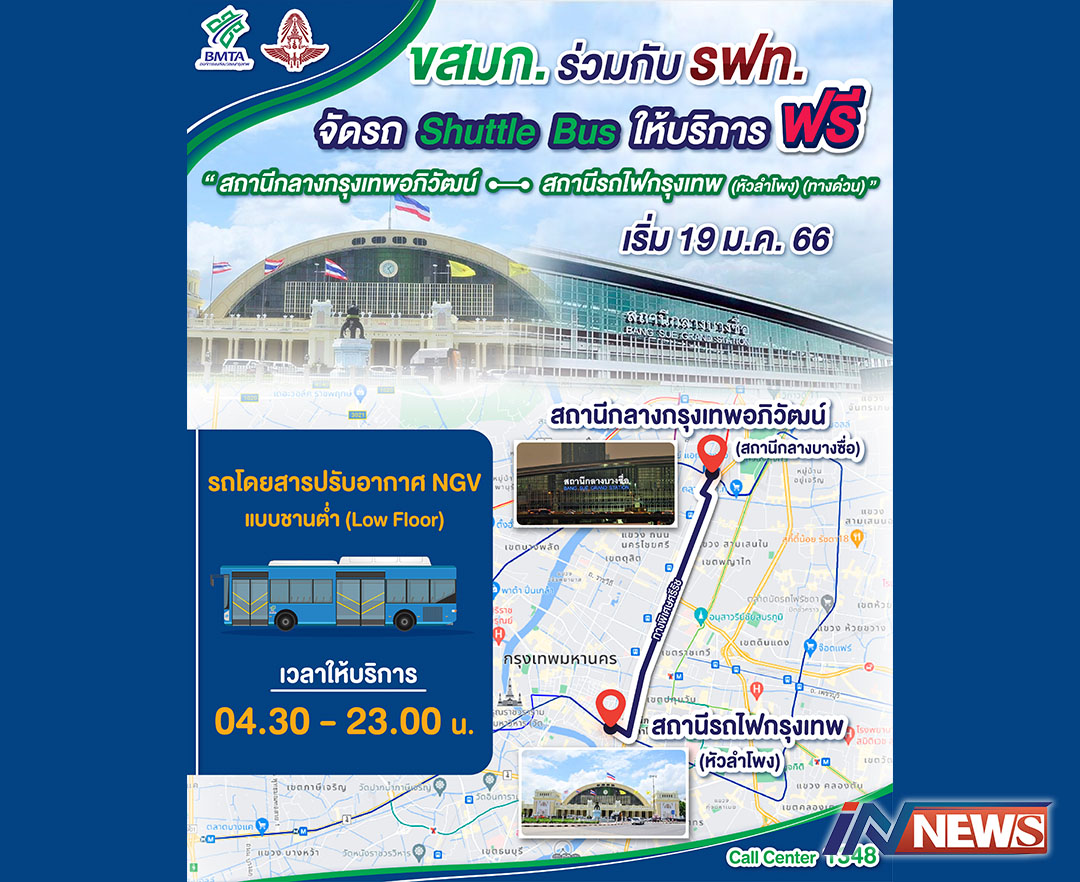 กรุงเทพฯ-ขสมก. ร่วมกับ รฟท. จัดรถ Shuttle Bus ให้บริการฟรีในเส้นทาง “สถานีกลางกรุงเทพอภิวัฒน์ - สถานีรถไฟกรุงเทพ (...