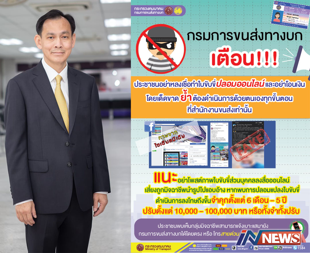 ขบ.เตือนอย่าหลงเชื่อทำใบขับขี่ออนไลน์ ย้ำต้องทำด้วยตนเองที่ขนส่งเท่านั้น