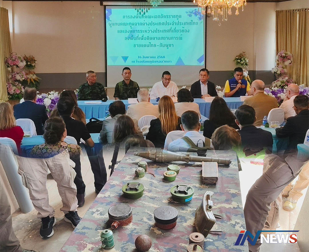 ไทยนำ'ทูตฯ33ปท.-สื่อ'ลงพิสูจน์พื้นที่จริง ดูเก็บกู้ทุ่นระเบิดเขมรใน'อุบลฯ-ศรีสะเกษ'