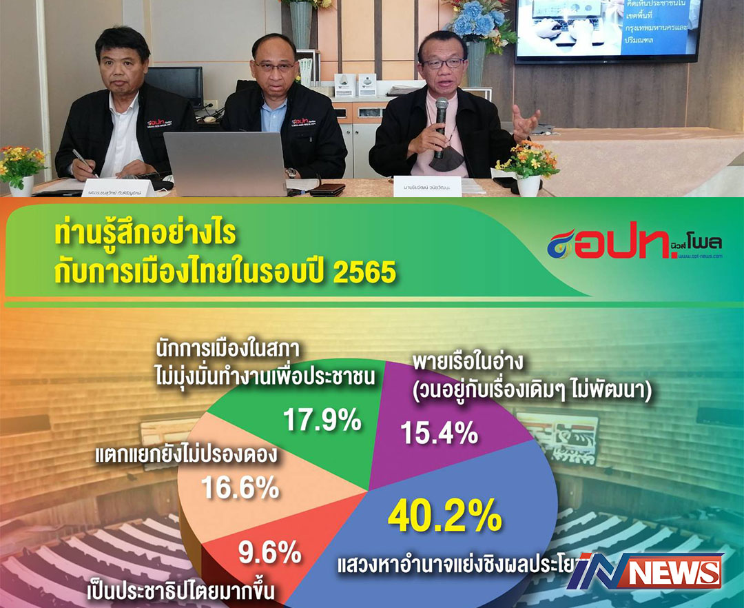 กรุงเทพฯ-ช่วงเปลี่ยนผ่านเข้าสู่ปีเถาะ 2566 “อปท.นิวส์โพล”กะเทาะใจคนไทย พบมองการเมืองติดลบเพราะเอาแต่แย...