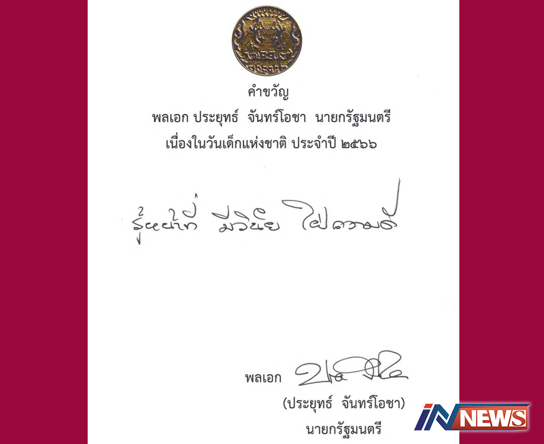 ออกแล้ว'คำขวัญวันเด็กปี66'จากนายกฯ 'รู้หน้าที่ มีวินัย ใฝ่ความดี'