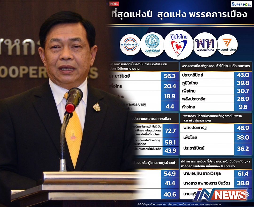 โพลโหวตปชป.ยืนหนึ่งสถาบันการเมือง 'อลงกรณ์'ขอบคุณปชช.เชื่อมั่นในพรรค
