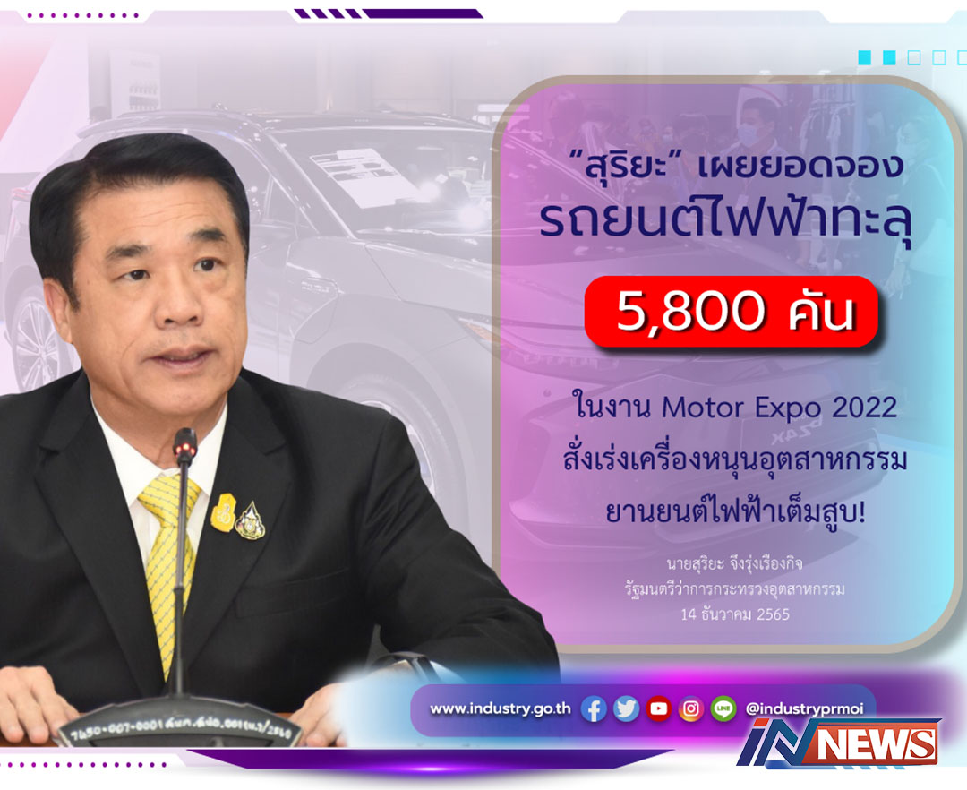 'สุริยะ'เผยยอดจองรถไฟฟ้าทะลุ5.8พันคันงานมอร์เตอร์เอ็กซ์โปร์2022สั่งลุยเต็มสูบ!