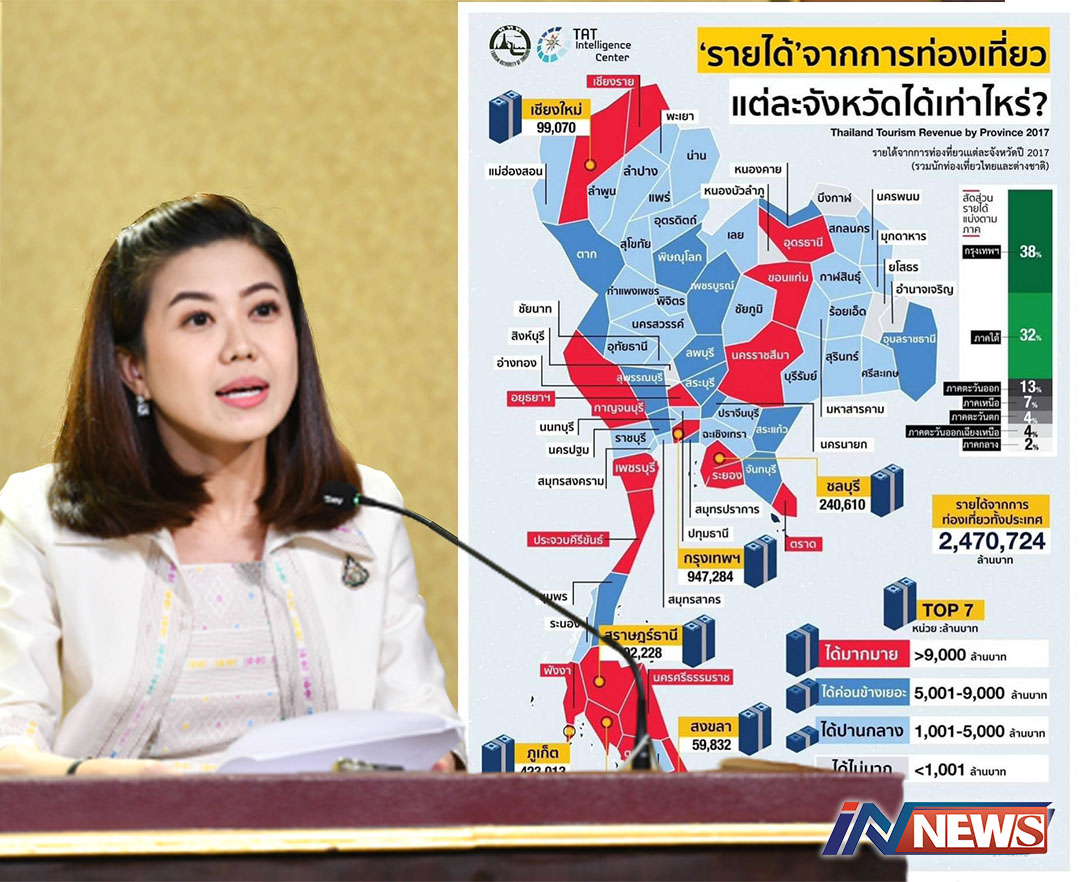กรุงเทพฯ-"ทิพานัน" โชว์ผลสำเร็จ รัฐบาล เปิด10อันดับจังหวัดที่มีรายได้จากการท่องเที่ยวสูงสุด ภูเก็ตคว้าแชมป์ 12...