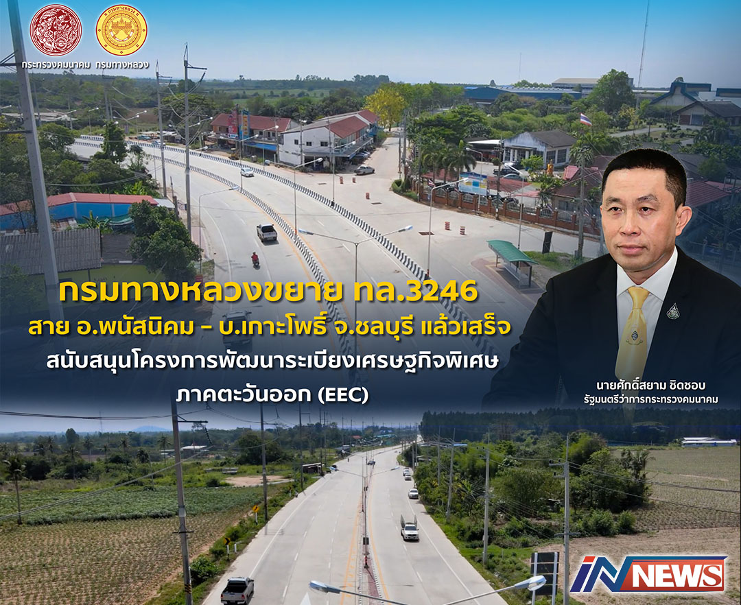 กรุงเทพฯ-กรมทางหลวงขยายทางหลวงหมายเลย 3246 สายอำเภอพนัสนิคม - บ้านเกาะโพธิ์ จังหวัดชลบุรี แล้วเสร็จสนับสนุนโครงการพัฒนาร...