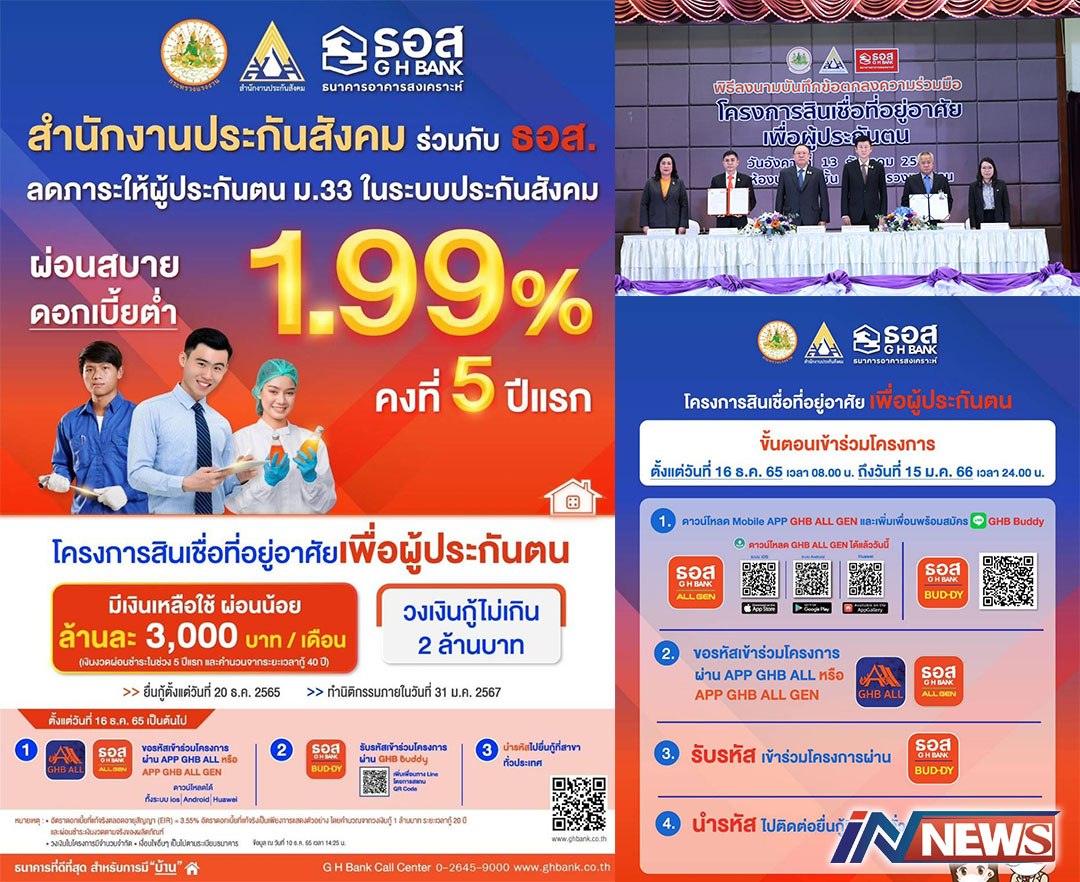 ผู้ประกันตนมาตรา33เฮ!สปส.จับมือธอส. ปล่อยสินเชื่อที่อยู่อาศัยดอก5ปี1.99%