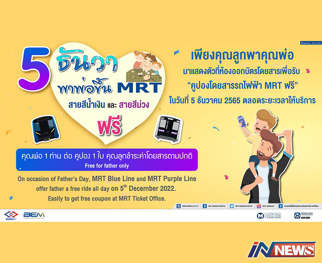 รฟม.และBEM จัดกิจกรรม5ธันวาพาพ่อ ขึ้นMRTสายสีน้ำเงินและสายสีม่วงฟรี