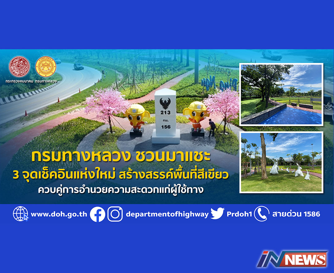 กรุงเทพฯ-กรมทางหลวง ชวนมาแชะ 3 จุดเช็กอินแห่งใหม่ สร้างสรรค์พื้นที่สีเขียวควบคู่การอำนวยความสะดวกแก่ผู้ใช้ทางพร้อมเชิญชว...