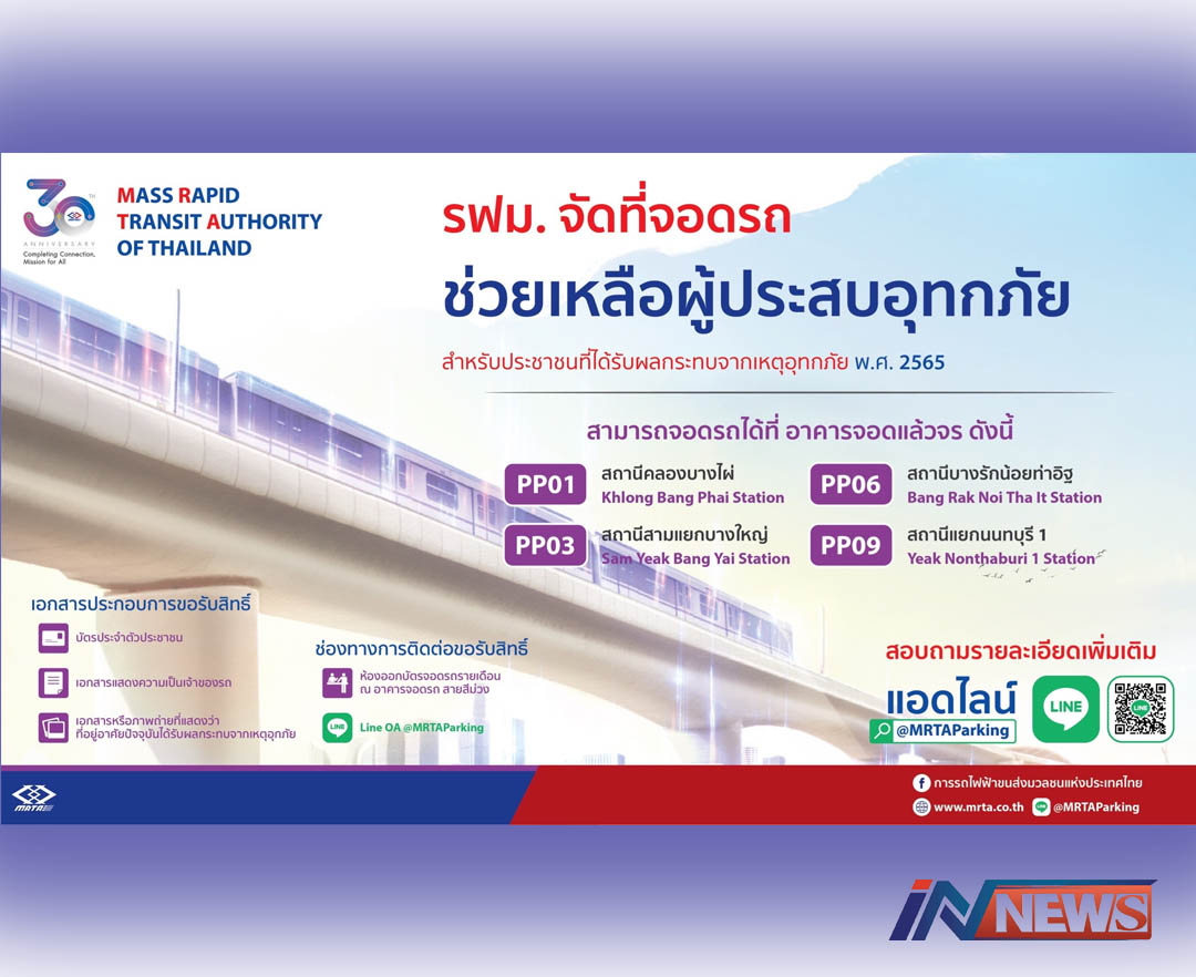 รฟม.จัดที่จอดรถ MRT สายสีม่วง4แห่ง รองรับและช่วยเหลือผู้ประสบอุทกภัย