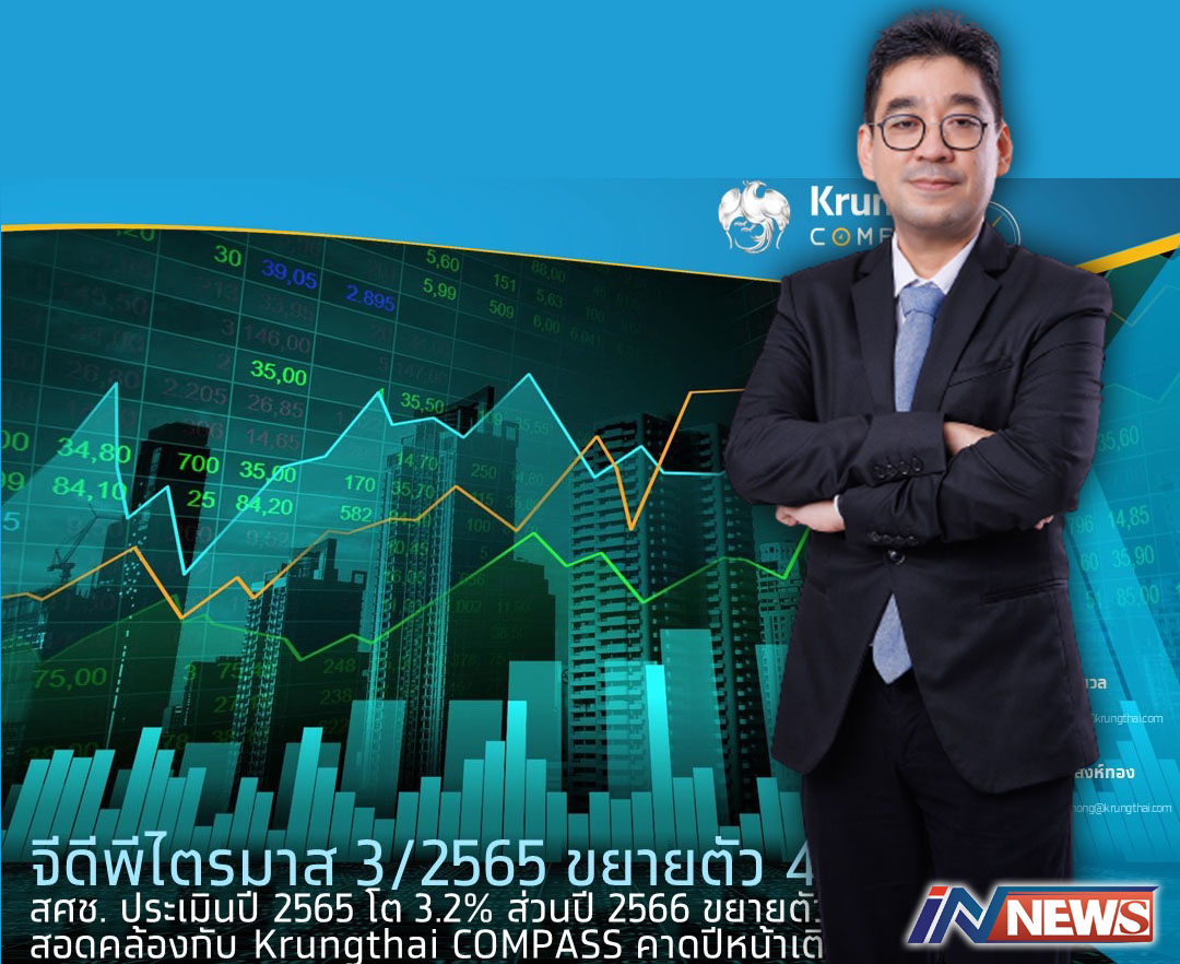 กรุงเทพฯ-Krungthai COMPASS นำเสนอบทวิเคราะห์เรื่อง “จีดีพีไตรมาส 3/2565 ขยายตัว 4.5% สศช. ประเมินปี 2565โต 3.2% ส่...