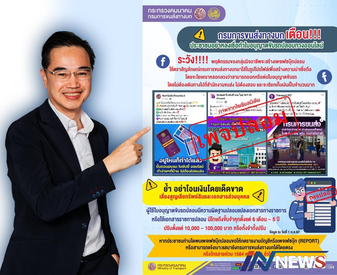 ดีอีเตือนภัย'มิจฉาชีพ'เปิดเฟสบุคปลอม ลวงทำ'ใบขับขี่ออนไลน์ระวังเสียทั้งเงิน