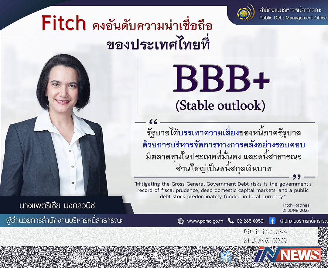 Fitch Ratings คงอันดับน่าเชื่อถือไทย ที่BBB+ ในระดับมีเสถียรภาพ