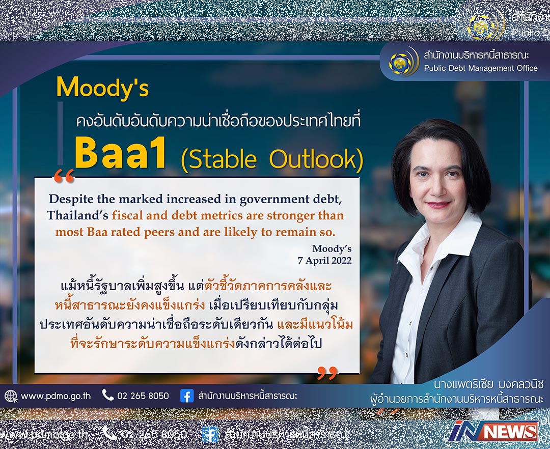 Moody’sคงอันดับน่าเชื่อถือไทยที่Baa1 ถือว่ามีเสถียรภาพใน6สาระสำคัญ