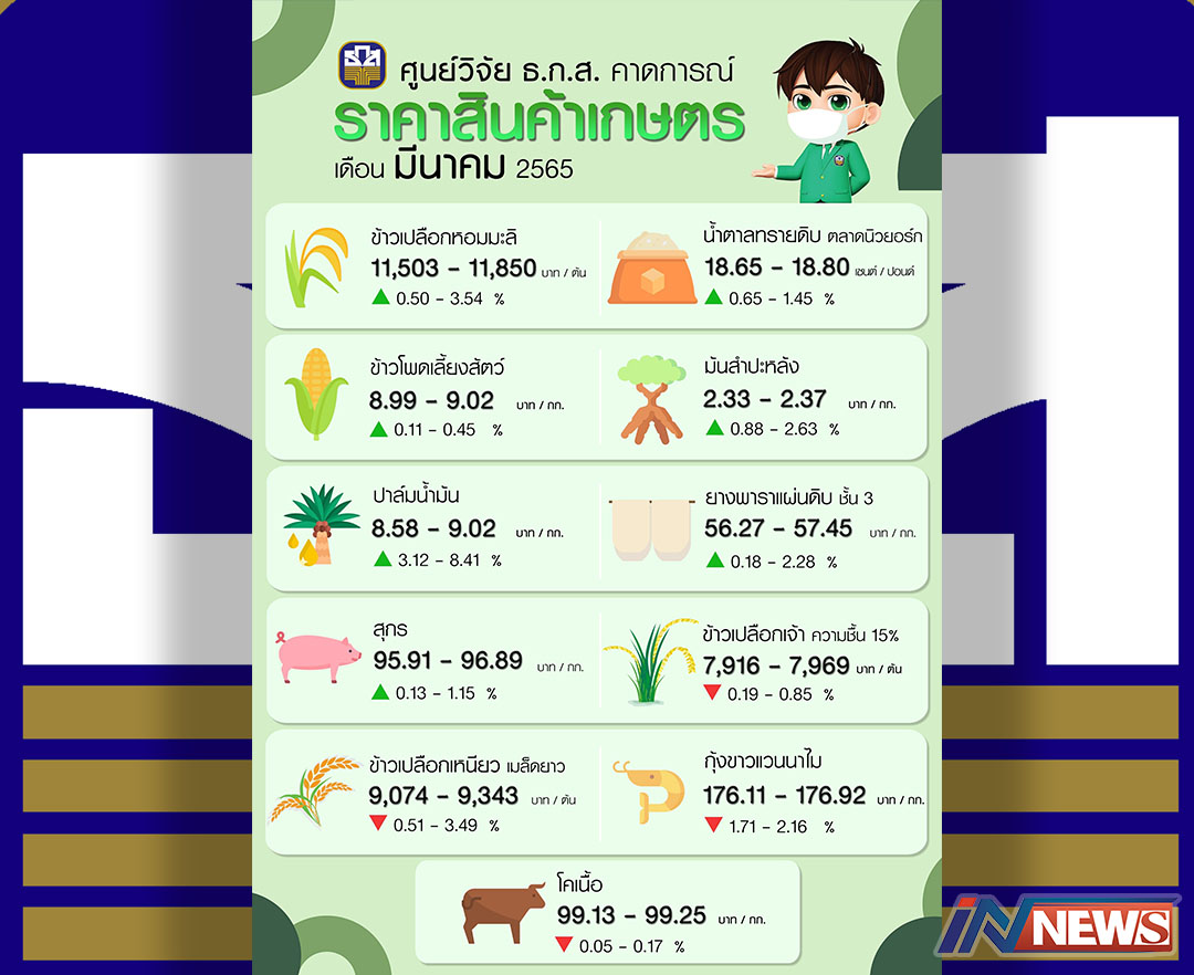 ศูนย์วิจัยธกส.คาดการณ์ราคาสินค้าเกษตรเดือนมีนาคม2565สุกรราคาพุ่งอีก