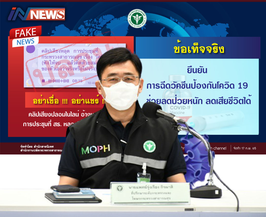 โฆษกสธ.เตือนอย่าเชื่อ'คลิปเสียงปลอม' หลุดที่ประชุมสธ.หลอกฉีดวัคซีนโควิด