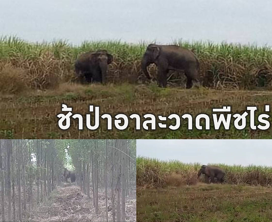 ช้างป่าอ่างฤาไนออกอาละวาดกินพืชไร่ 'อ้อย-มัน-ยูคาฯ'ชาวเขาไม้แก้วเสียหาย