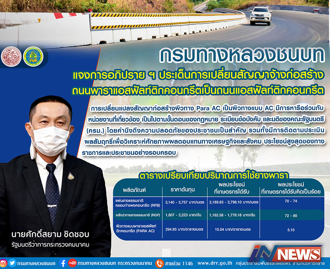 ทช.ชี้แจงการเปลี่ยนแปลงสัญญาก่อสร้าง ถนนพาราแอสฟัลท์ติกเป็นแอสฟัลท์ติก