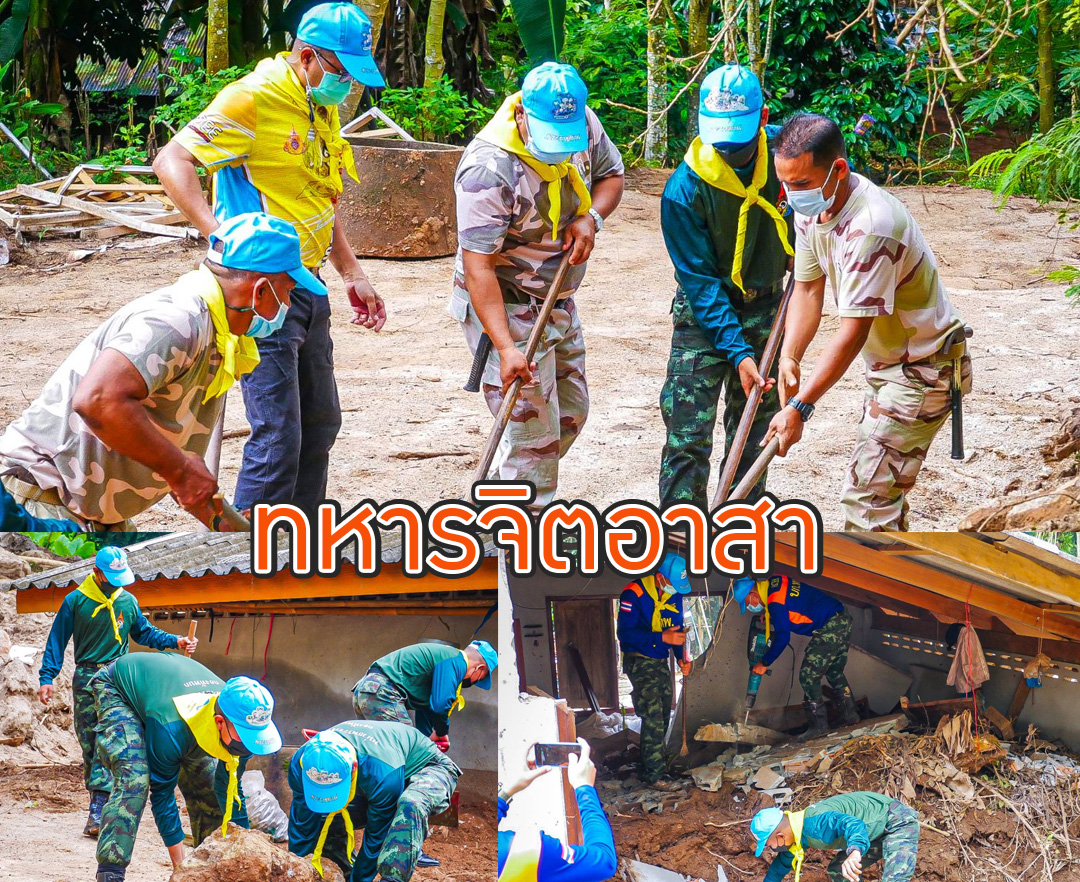 ทหารจิตอาสาผนึกตร.อาสารักษาดินแดน เข้าฟื้นฟูบ้านถูกดินสไลด์ทับเสียหาย