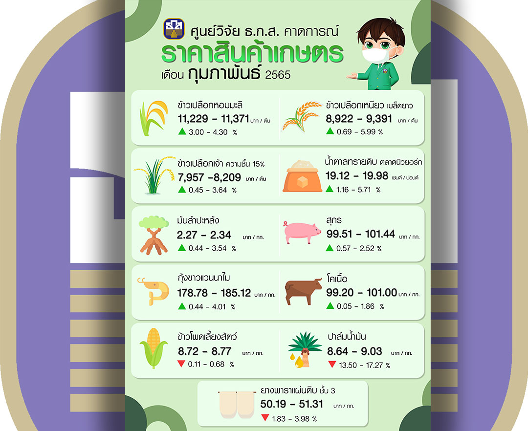 ศูนย์วิจัยธกส.คาดการณ์ราคาสินค้าเกษตร ก.พ.65อาหารปรับสูงขึ้น-พืชไร่ลด