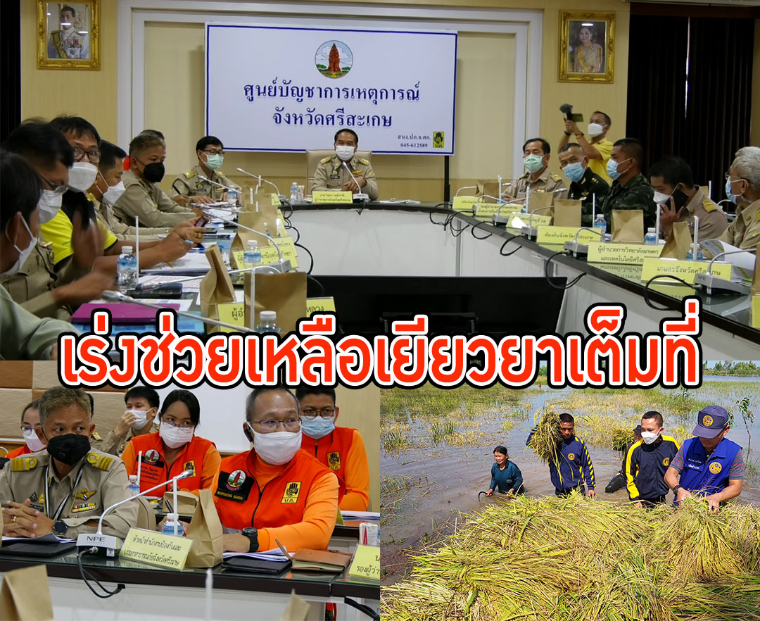 ศรีสะเกษ - ชาวบ้านถูกน้ำท่วมไม่ต้องรอนานผู้ว่าสั่งเร่งช่วยเหลือเยียวยาเต็มที่ เพื่อเตรียมพร้อมป้องกันและแก้ไขปัญหาอ...