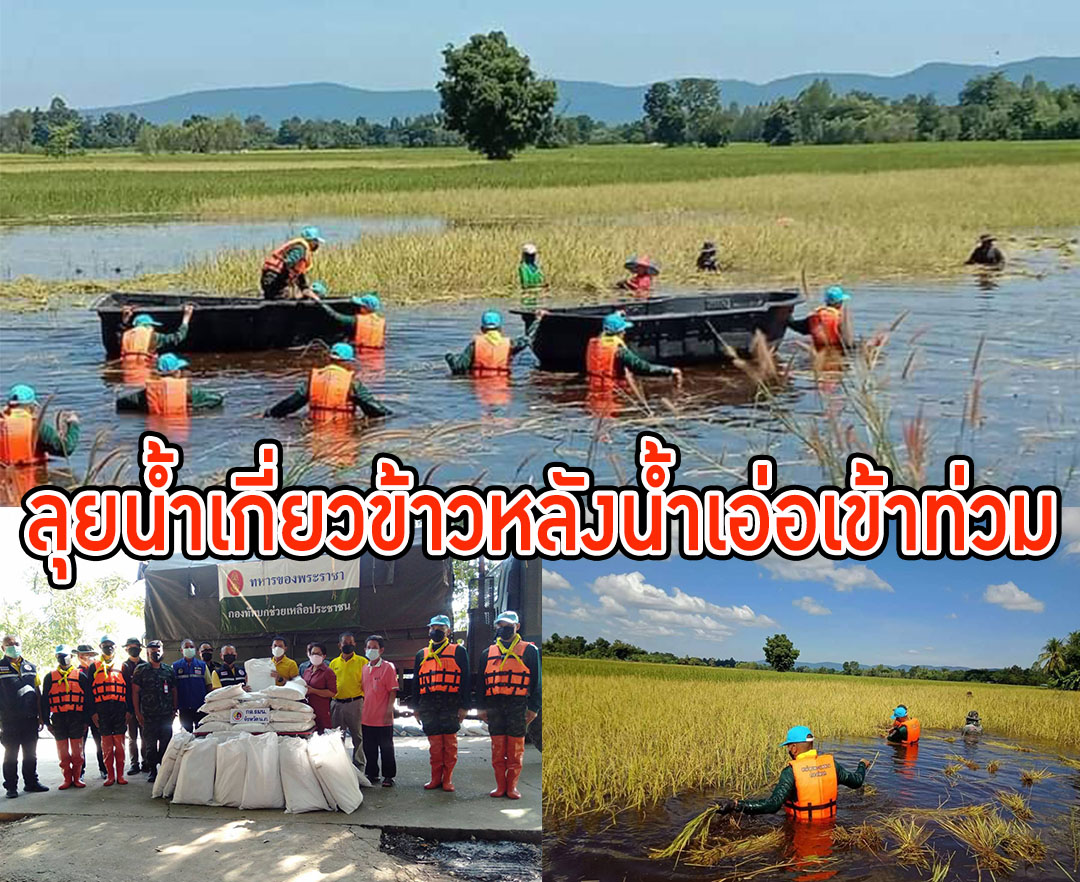 ทหารไม่ทิ้งปชช.ลุยน้ำเกี่ยวข้าวหลังน้ำจากเขื่อนเอ่อท่วมที่นาได้รับความเสียหาย