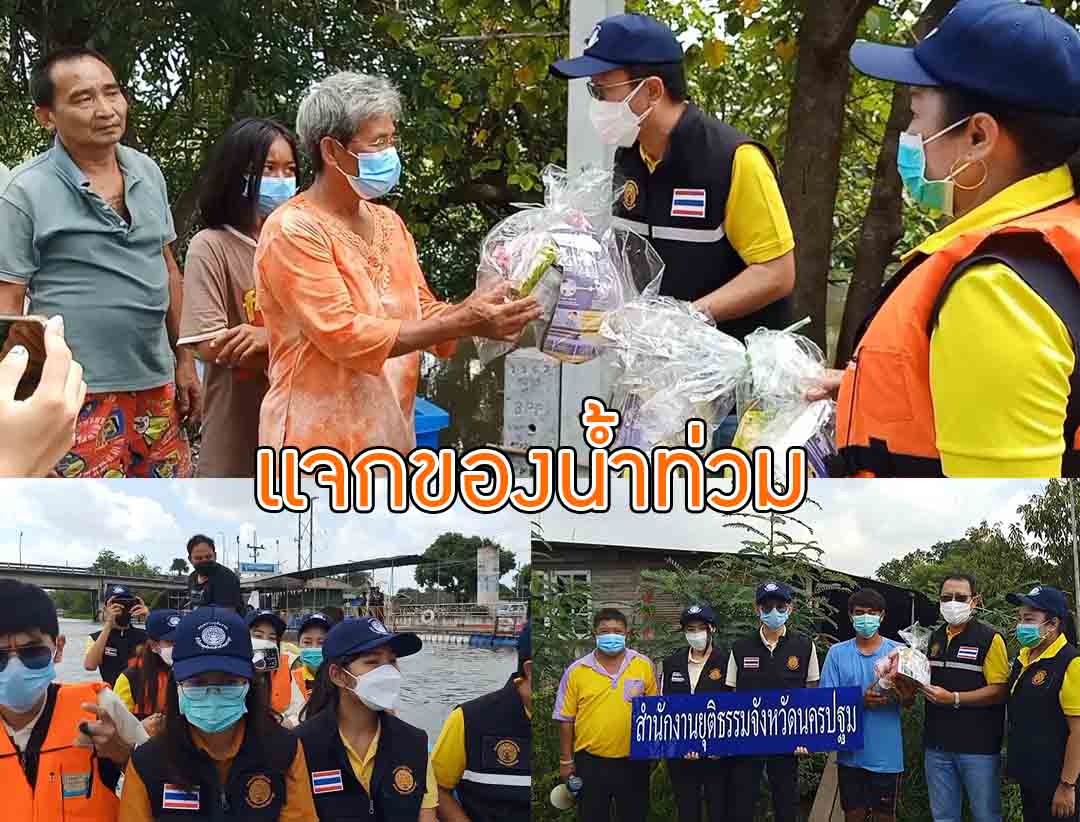 สนง.ยุติธรรมจ.นครปฐมแจกของให้กับชาวบ้านที่ประสบภัยน้ำท่วม