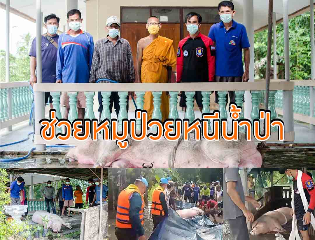 ทหารกู้ภัยฯชาวบ้านช่วยหมูป่วยน้ำหนักกว่า300กิโลหนีน้ำป่า
