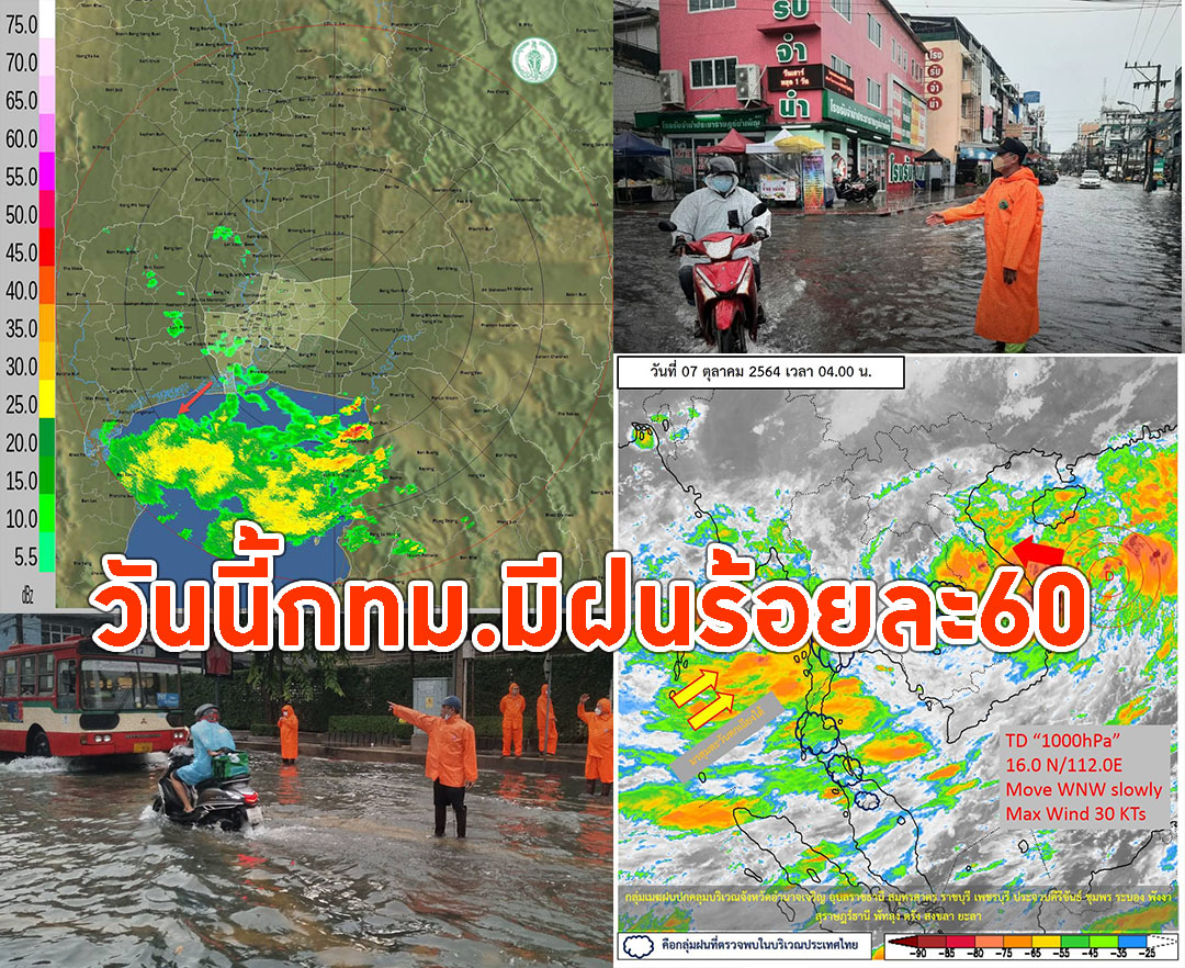 กรุงเทพฯ- สถานการณ์สภาพอากาศประจำวันที่ 7 ตุลาคม 2564 ในพื้นที่กรุงเทพและปริมณฑล คาดมีฝนฟ้าคะนองร้อยละ 60ของพื้นที่ อุณห...
