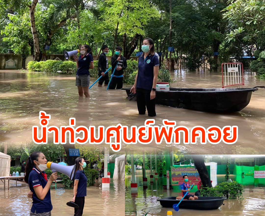 ลพบุรี-ศูนย์พักคอย วัดวังกระทุ่ม โคกสำโรงถูกน้ำท่วมผู้ป่วยโควิด-19 กระอัก ต้องขนกลับไปพักที่บ้านชั่วคราว