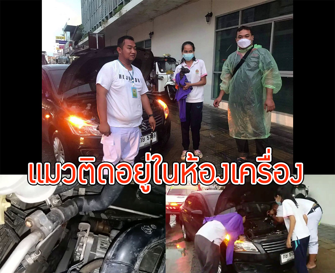 ช่วยเหลือแมวหนีฝนติดอยู่ในห้องเครื่อง ประชาชนก่อนเจ้าของรถนำไปเลี้ยง