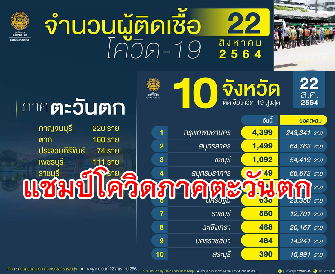 ราชบุรี - ยอดติดเชื้อ 541 ราย ติดลำดับ 1 ตะวันตก 4 วันติด ขึ้นลำดับ 7 ของประเทศ