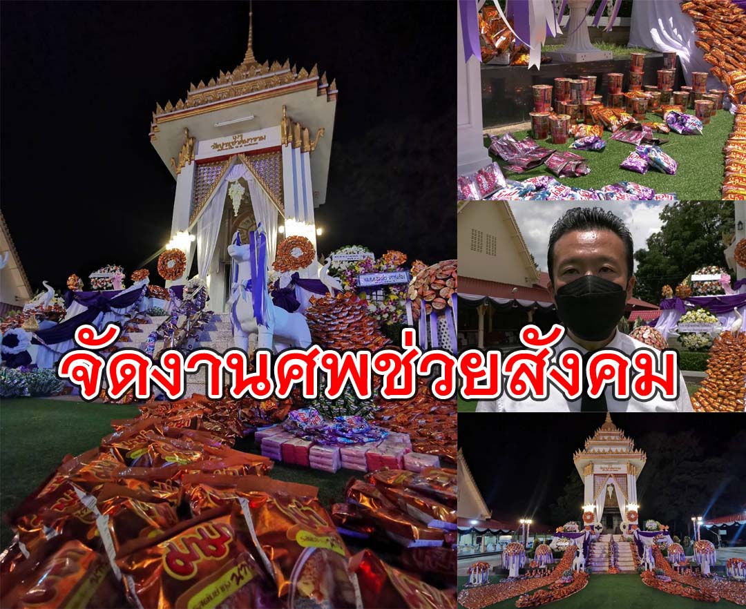 งานศพแปลก!เจ้าภาพควักเงินแสนจัดซื้อ ข้าวสารอาหารแห้งประดับเมรุเผาแม่
