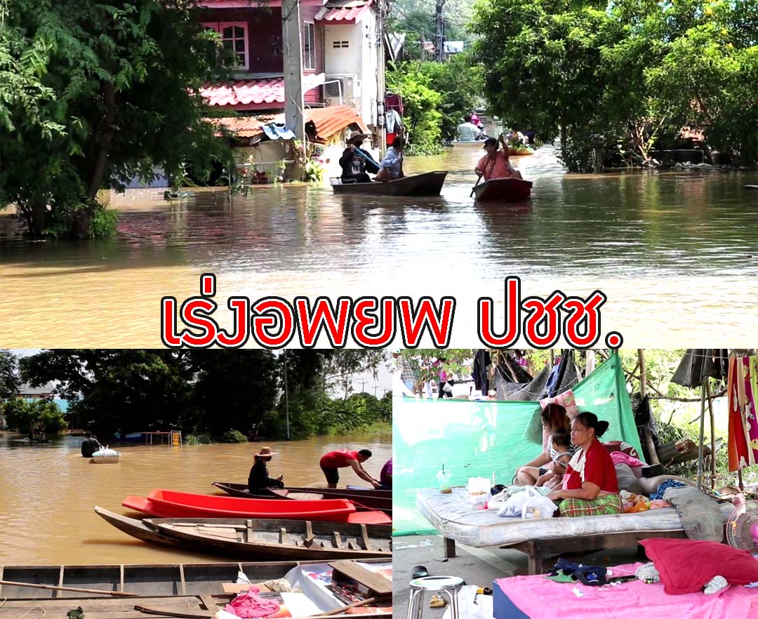 มวลน้ำไหลท่วมบ้านเรือนต้องอพยพขนของมาพัก อยู่ริมถนนจำนวนมาก