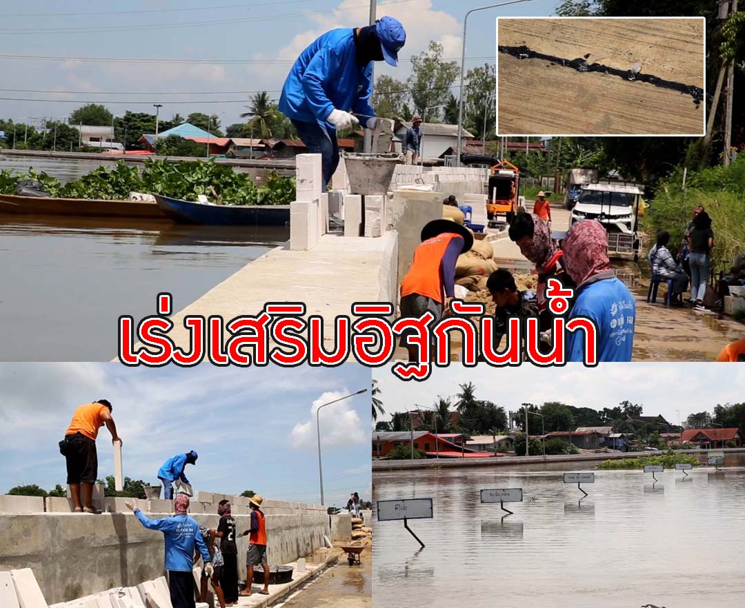 ชาวบ้านเร่งเสริมอิฐบนพนังเขื่อนสูงขึ้น20ซม. หวังพ้นวิกฤตอุทกภัย