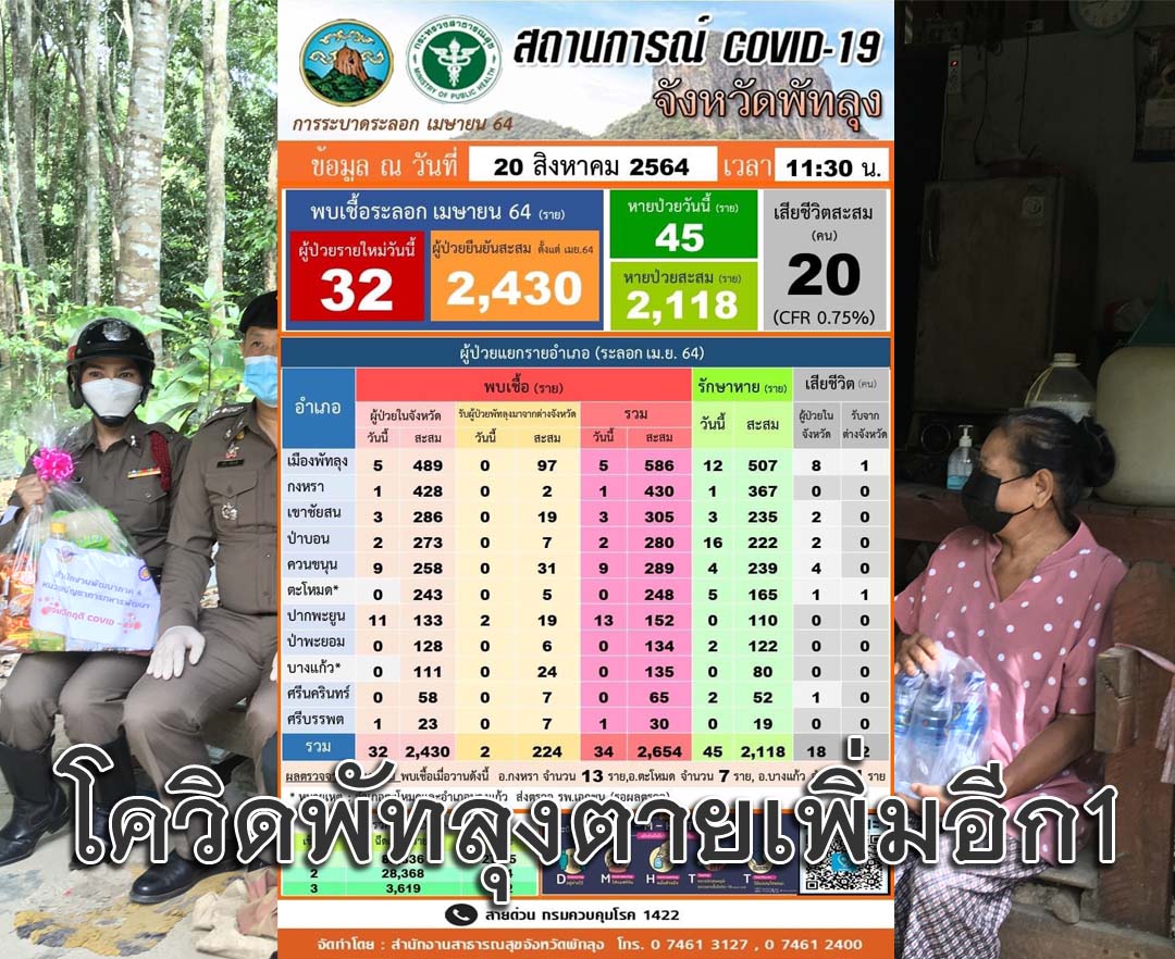 พัทลุง-โควิดพัทลุงมีผู้เสียชีวิตเพิ่มอีก 1 ราย รวมเป็น 20 ราย ด้าน ทหาร-ตำรวจ ลงพื้นที่มอบเครื่องอุปโภคบริโภ...