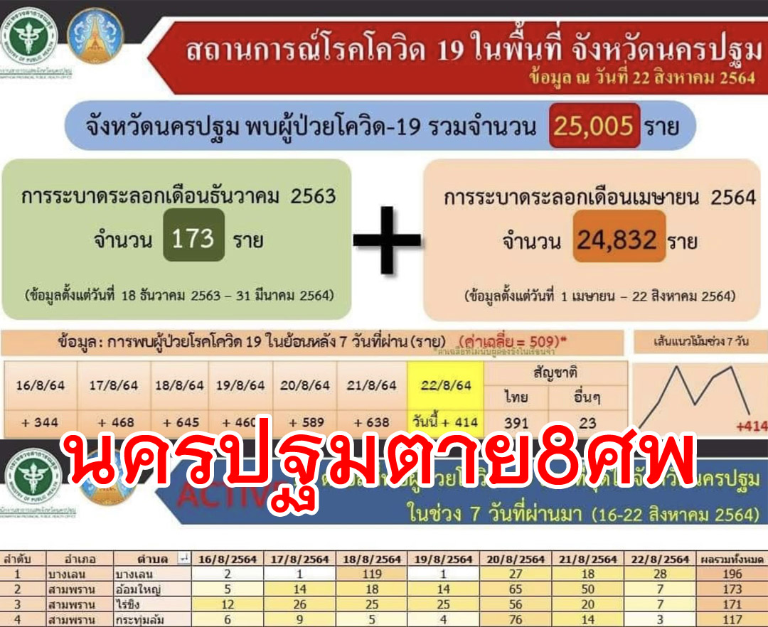นครปฐมยังหนักวันนี้ผู้เสียชีวิตพุ่งอีก8ศพ ผู้ป่วยเพิ่ม414รายทำสถิติต่อเนื่อง