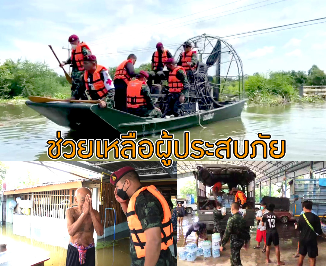 ผบ.พล.ป.ลพบุรีนำกำลังทหารช่วยผู้ประสบอุทกภัยในจ.สิงห์บุรี