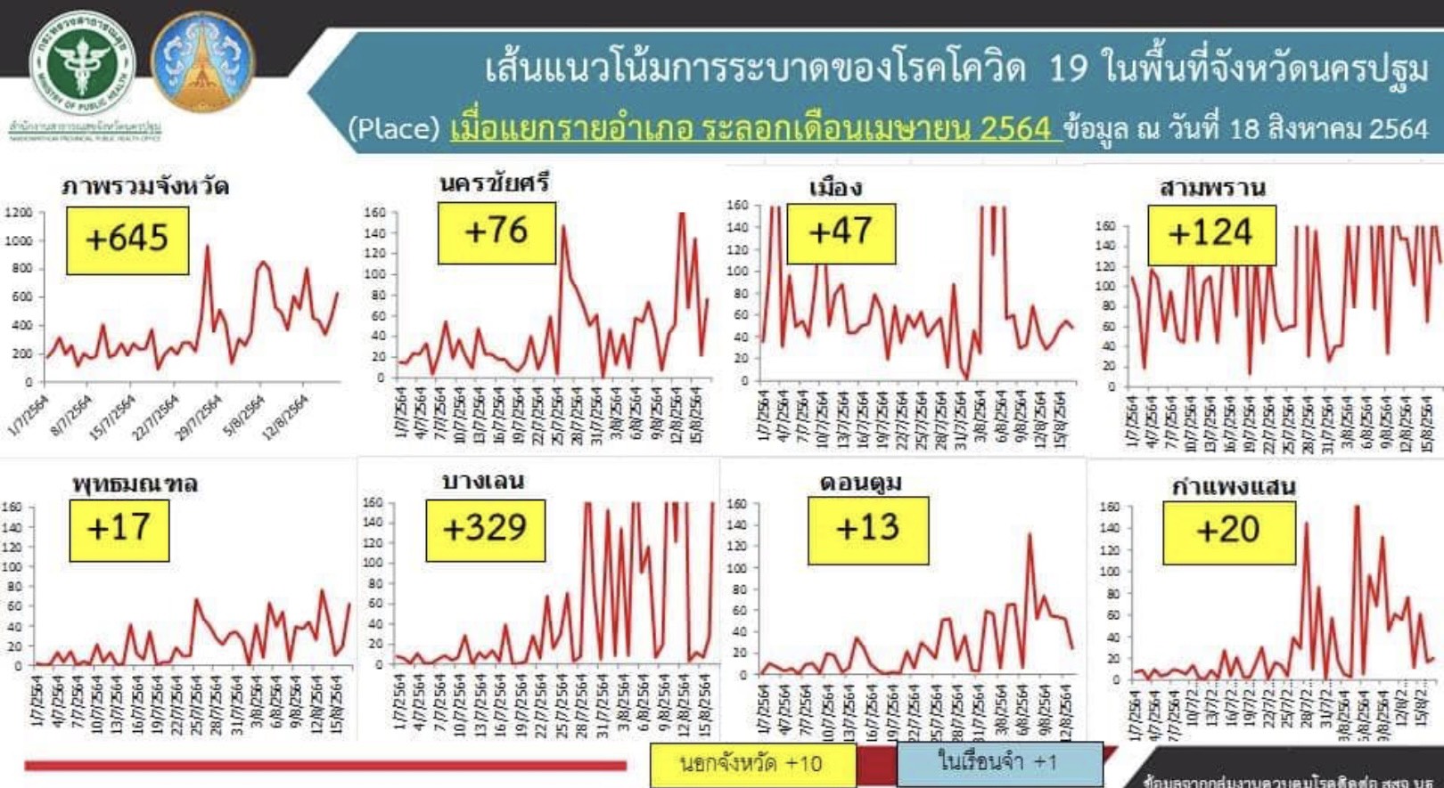 นครปฐม-ตรวจพบคลัสเตอร์ใหม่บางเลน 329 รายและสามพราน 124 รายผู้ป่วยติดเชื้อรายใหม่ 645 รายเสียชีวิต 6 รายผู้ป่วยสะสมรวม 22...